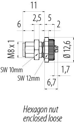 M8 Phích cắm gắn bảng, Số lượng cực : 3, hàn, IP67/IP69K, M10x0,75, Chốt trung tâm, với cốc hàn
