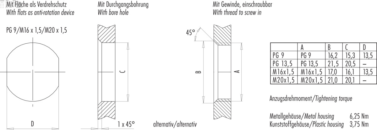 - 为了将电缆接头与设备接头锁紧,螺纹环要用 "手拧紧"(约60 cNm)。