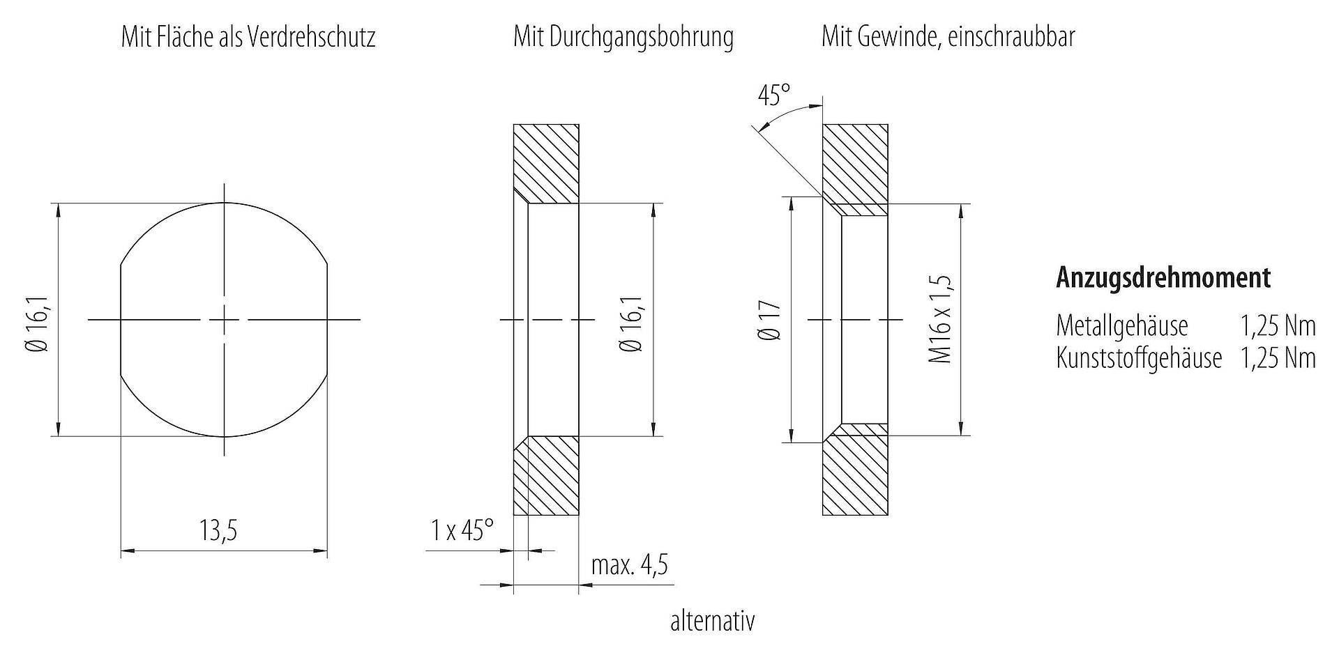 - 为了将电缆接头与设备接头锁紧,螺纹环要用 "手拧紧"(约60 cNm)。