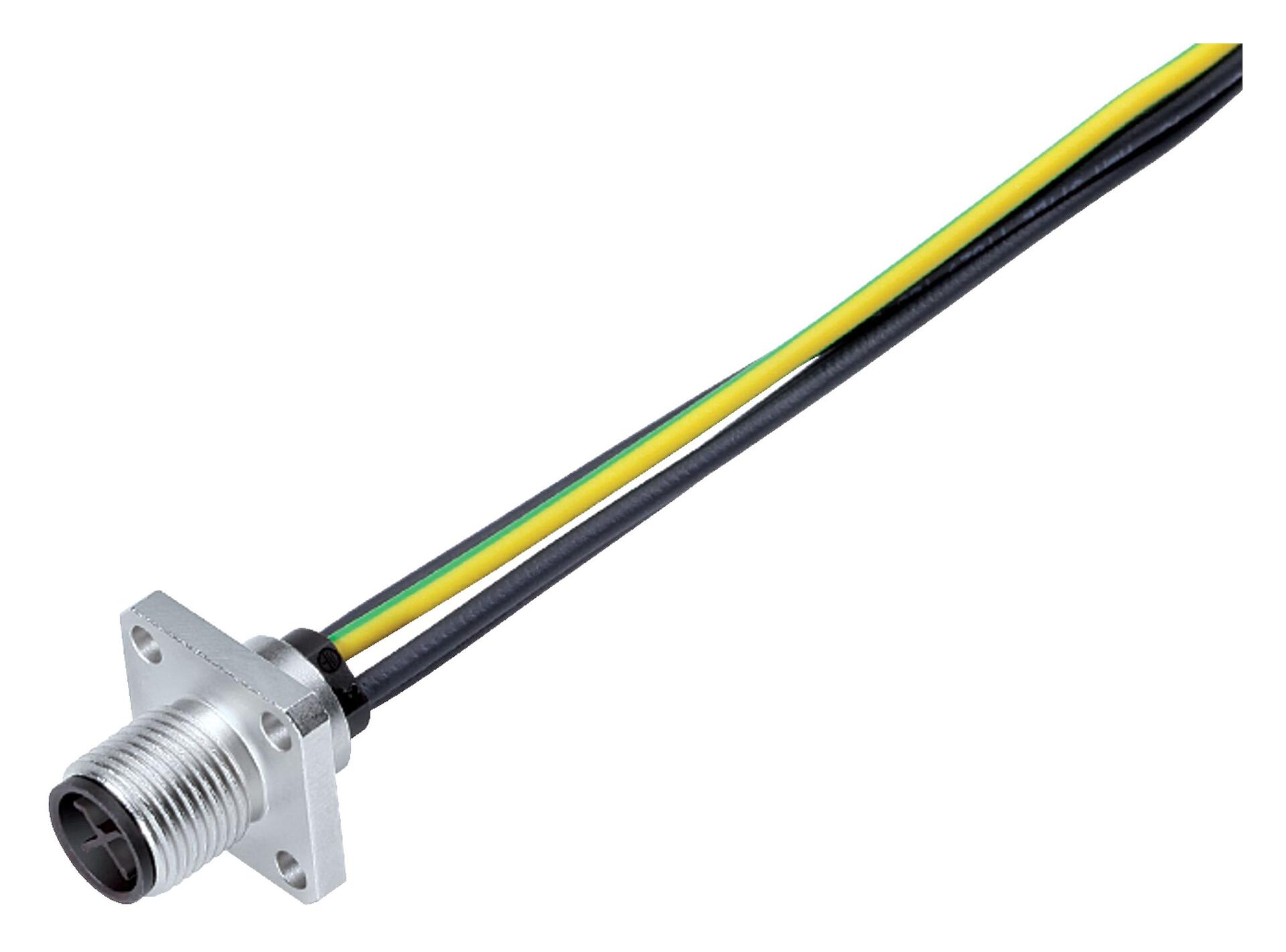 M12 Square male panel mount connector, Contacts: 4, unshielded, single wires, IP40, UL 2238, M3 (4x), Front mounting